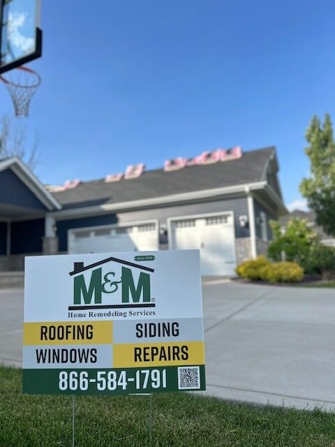 The first thing youโll often notice is a yard sign in front of the home. This isnโt just marketing โ it signals to neighbors and delivery teams that work is being done on the property. It also serves as a clear marker for where material deliveries should be dropped off and ensures that the roofing crew is easy to identify.